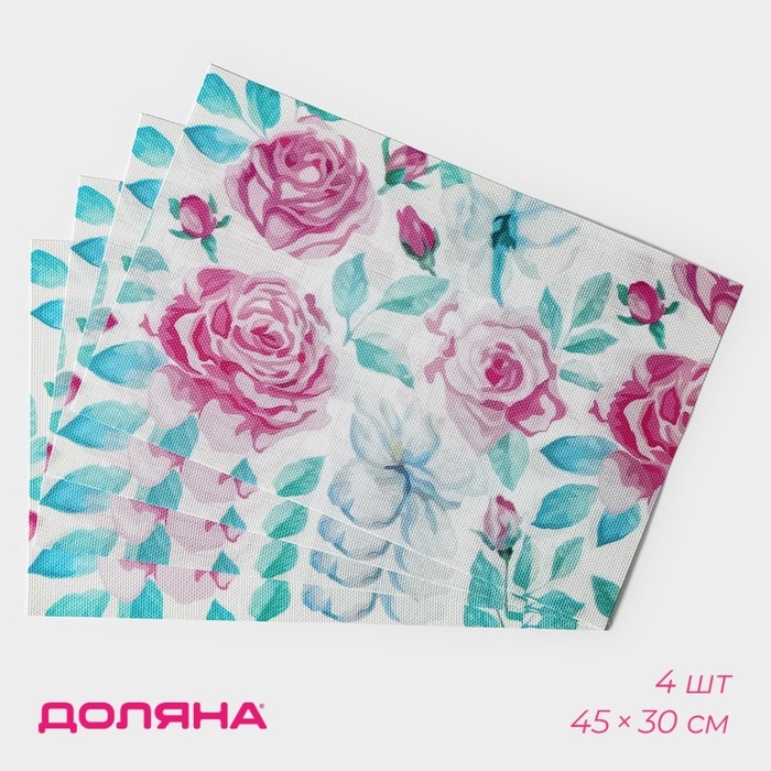Салфетки сервировочные на стол Доляна «Бутоны», 4 шт, 45×30 см