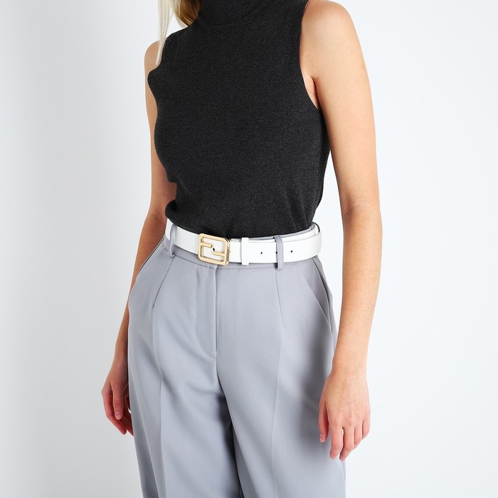 Ремень женский, ширина 3,5 см, пряжка металл, цвет белый
