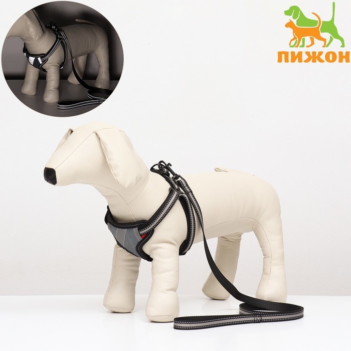 Комплект амуниции светоотражающий, размер S, ОГ 35-60 см, стропа 1,5 см, серый