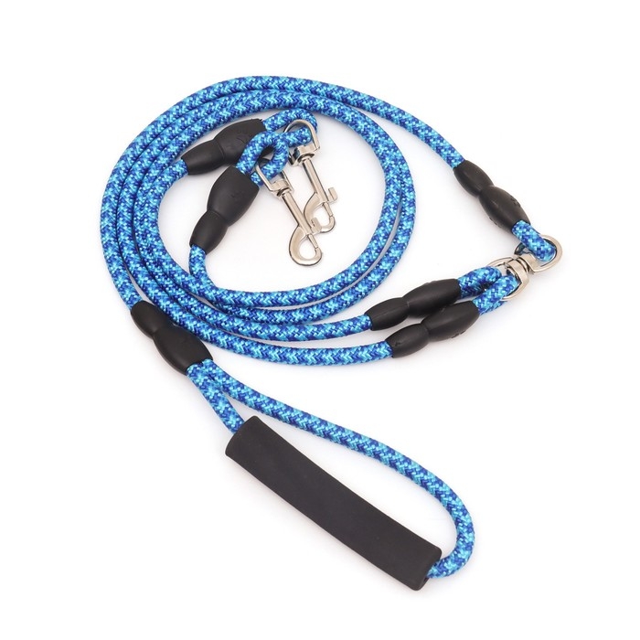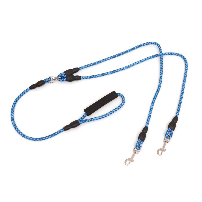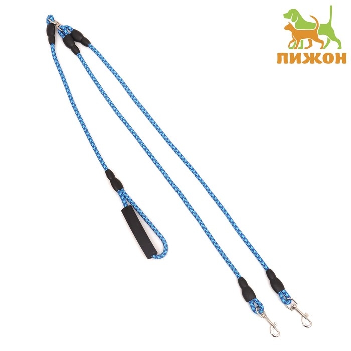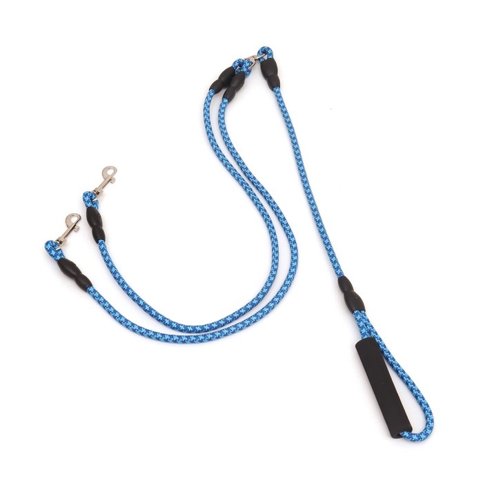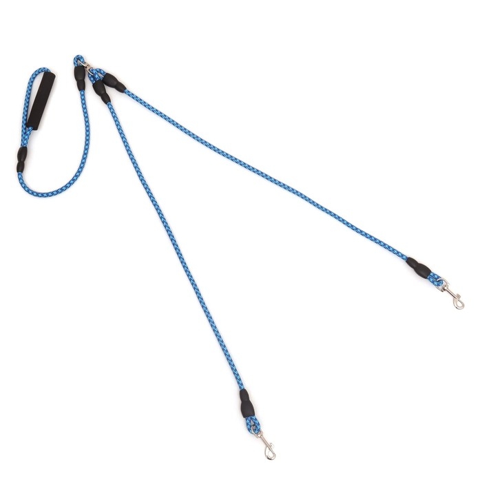 Сворка для двух собак, 1,5 м х 0.8 см, синяя