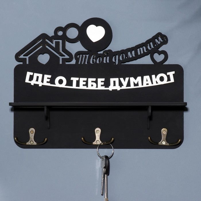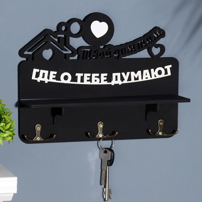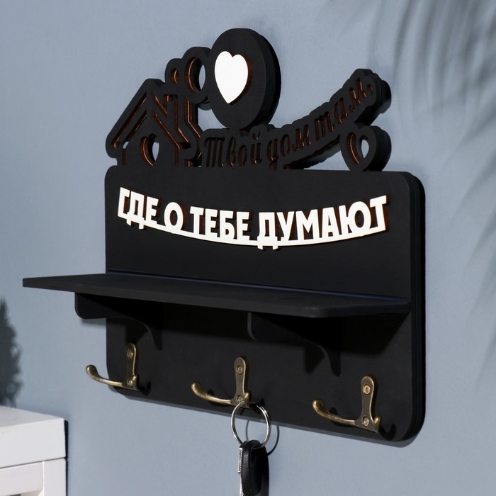 Ключница с полкой "Твой дом ..." черный цвет, 28х23х7,5 см