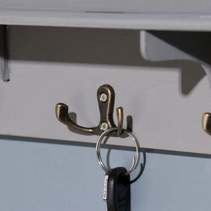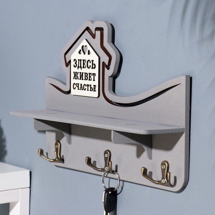 Ключница с полкой "Здесь живет счастье" серый цвет, 28х23х7,5 см