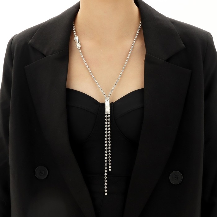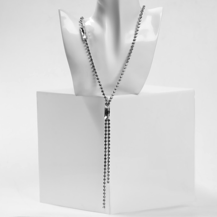 Колье «Нить» прямоугольники, цвет белый в серебре, 70 см