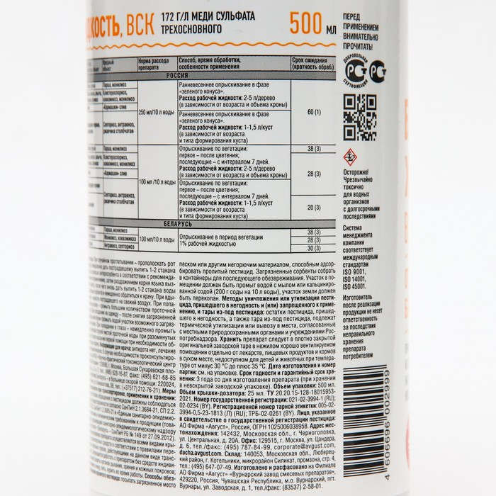 Средство от болезней растений "Август", "Бордоская жидкость", 500 мл