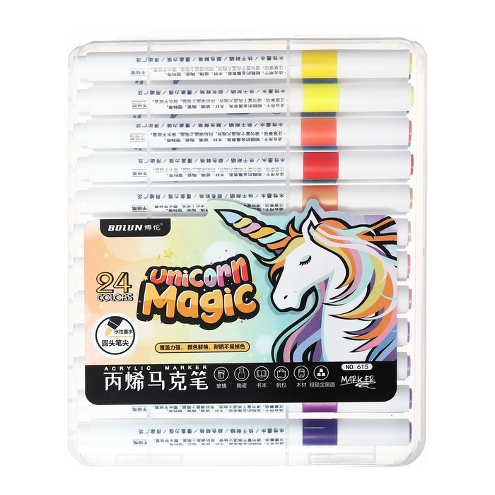 Набор маркеров акриловых 24 цвета, круглый наконечник, для любой поверхности
