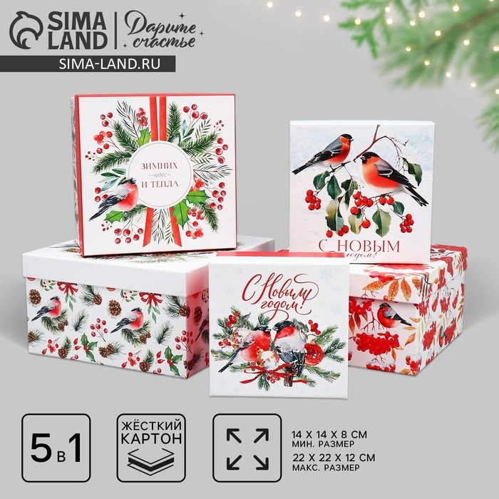 Набор подарочных коробк 5 в 1 «С Новым годом!», 14 х 14 х 8 – 22 х 22 х 12 см, Новый год
