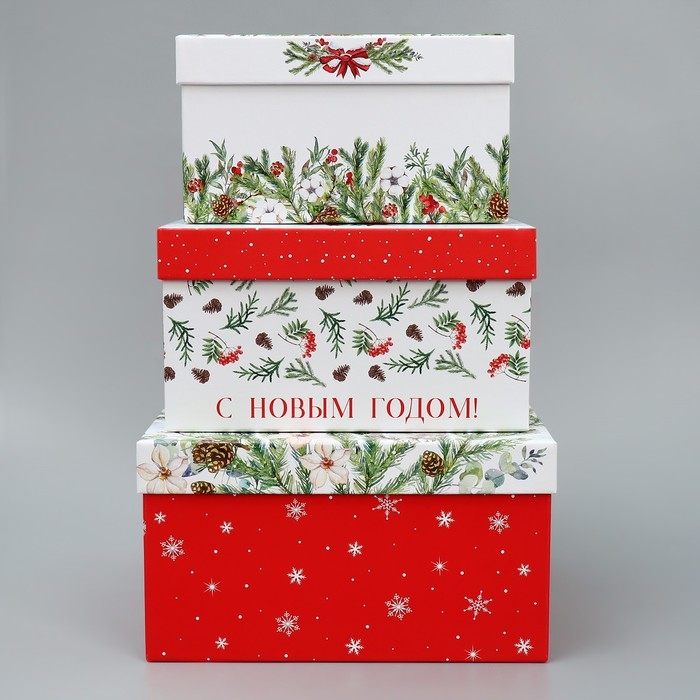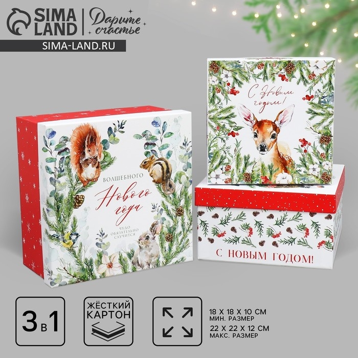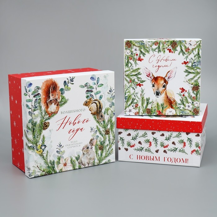 Набор подарочных коробк 3 в 1 «Новогодняя пора», 18 х 18 х 10 – 22 х 22 х 12 см, Новый год