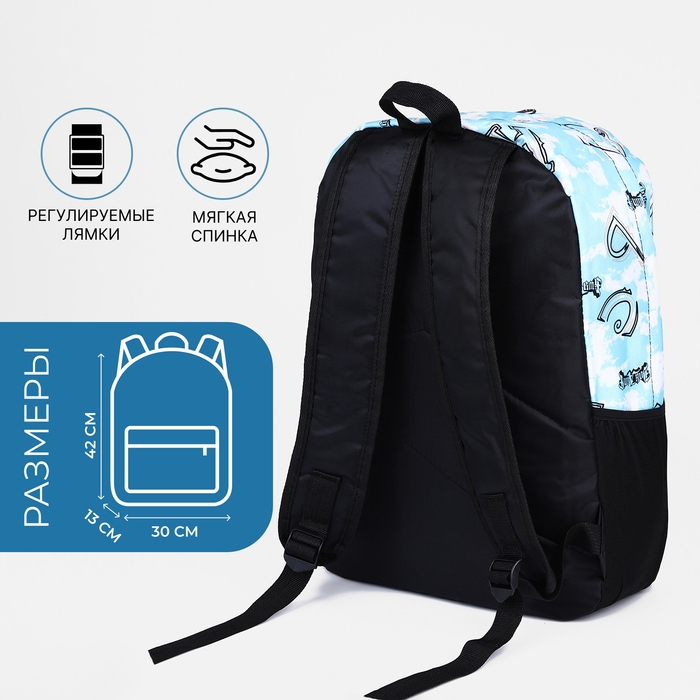 Рюкзак молодёжный из текстиля на молнии, 3 кармана, цвет голубой