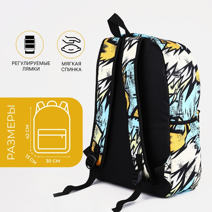 Рюкзак школьный из текстиля на молнии, 3 кармана, цвет жёлтый/разноцветный