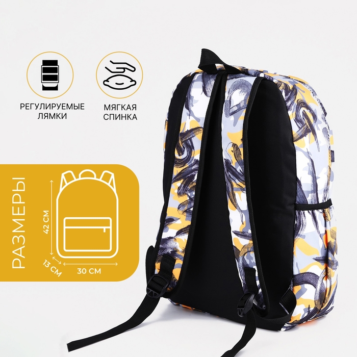 Рюкзак школьный из текстиля на молнии, 3 кармана, цвет жёлтый/серый