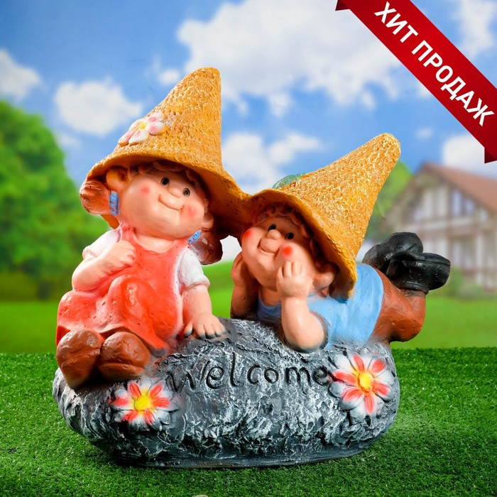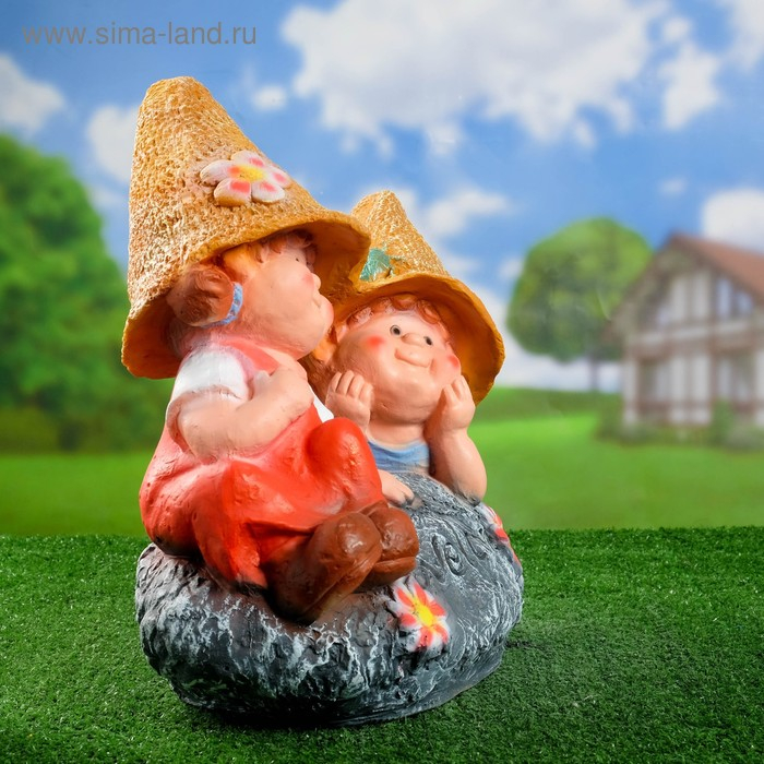 Садовая фигура "Девочка с мальчиком на камне" 46х43см