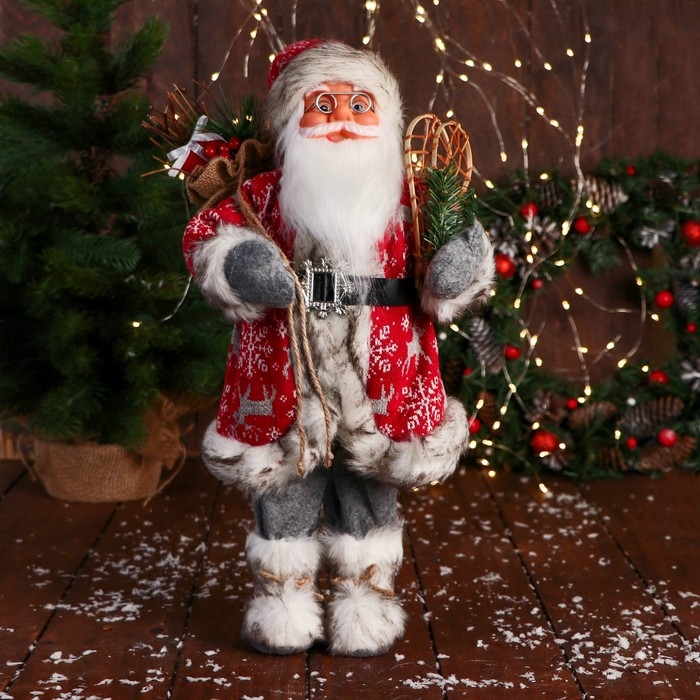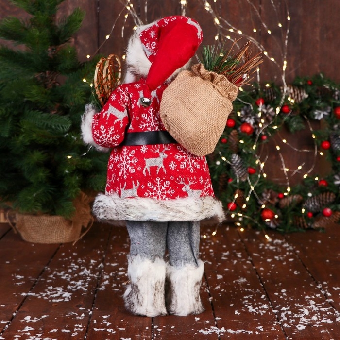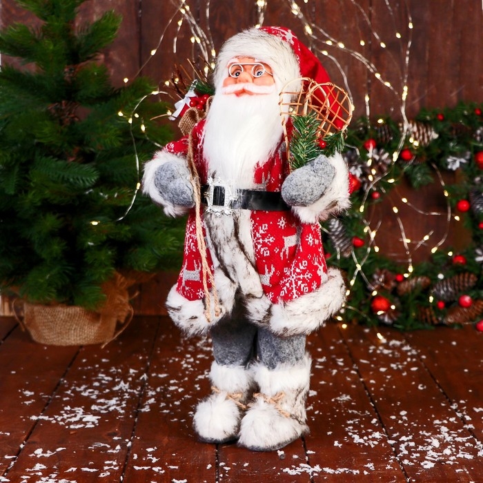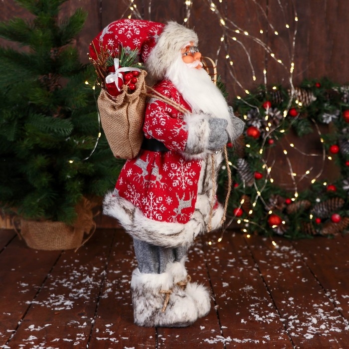Дед Мороз "В костюме со снежинками и с ремешком" 50 см, красный