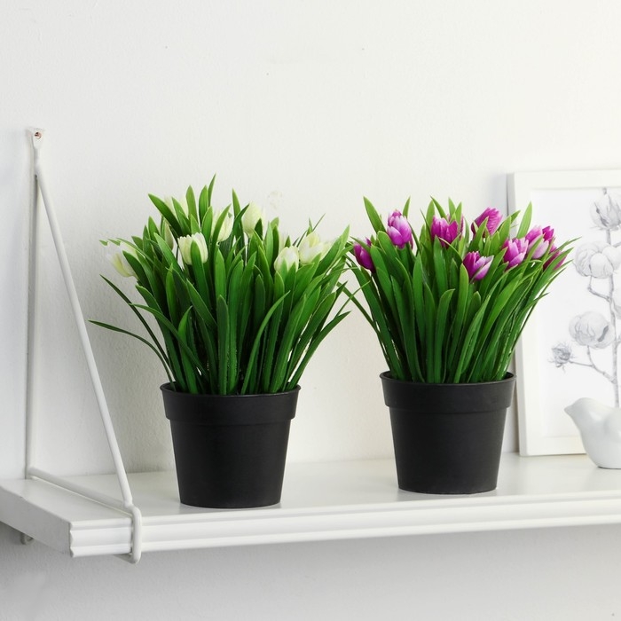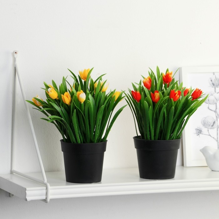 Бонсай в горшке "Тюльпаны и зелень" 9х18 см, микс