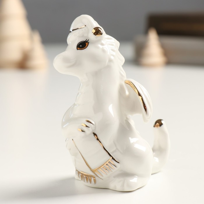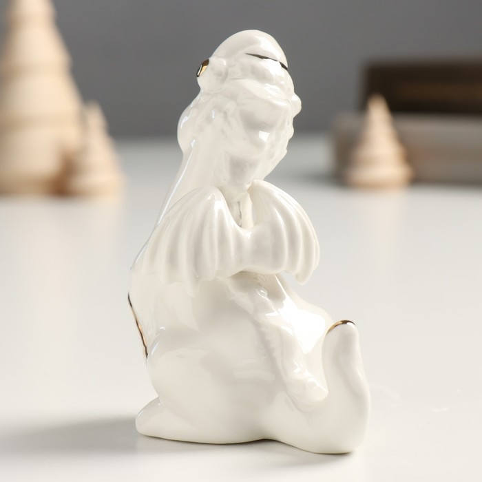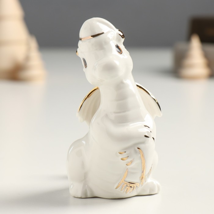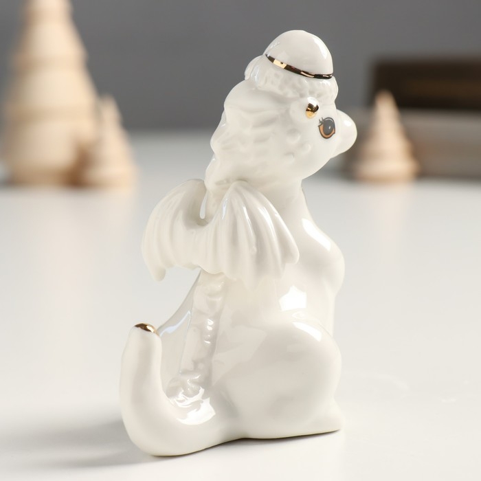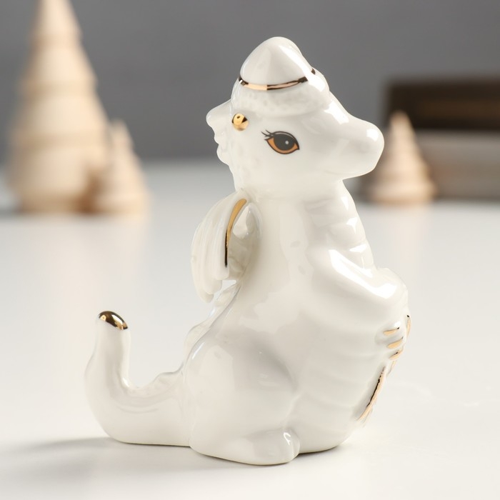 Сувенир керамика "Дракоша в новогоднем колпаке" бело-золотой 5х7х9,5 см