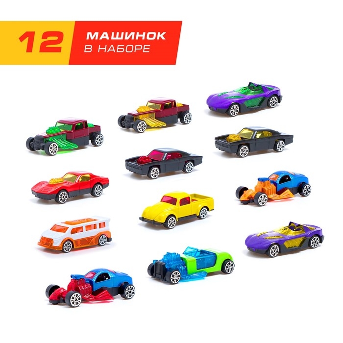 - В наборе 12 машинок разных моделей и цветов, которые не повторяются.