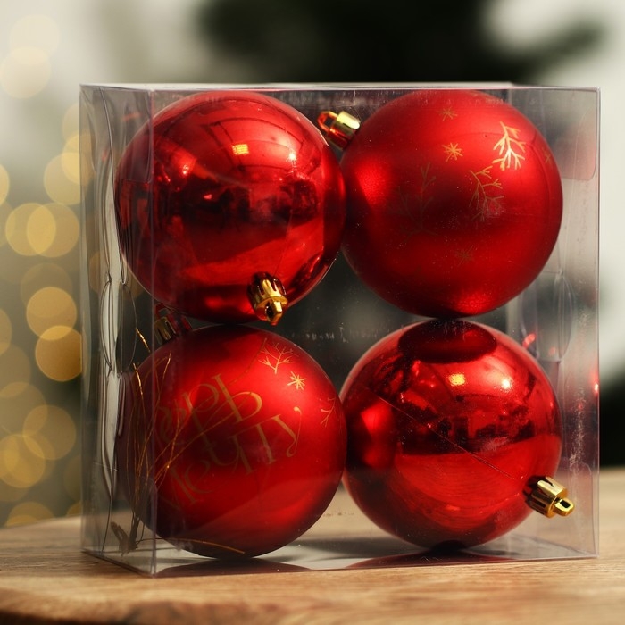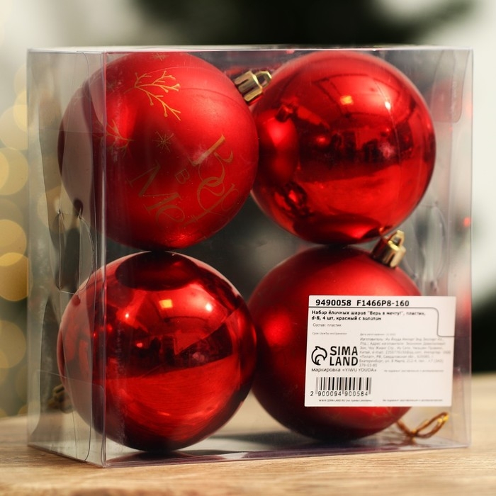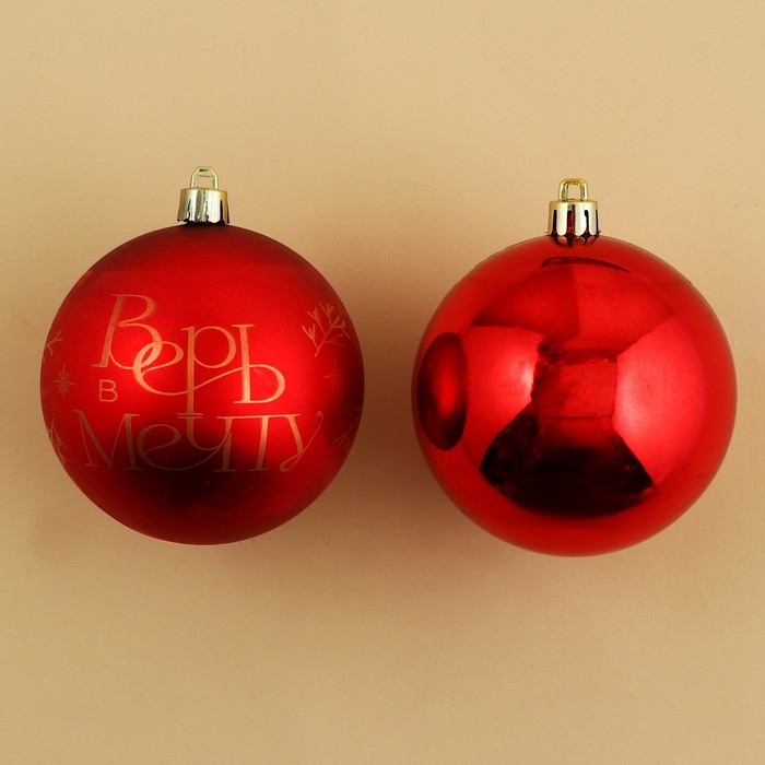 Шары ёлочные новогодние «Верь в мечту!», на Новый год, пластик, d=8, 4 шт., цвет красный с золотом