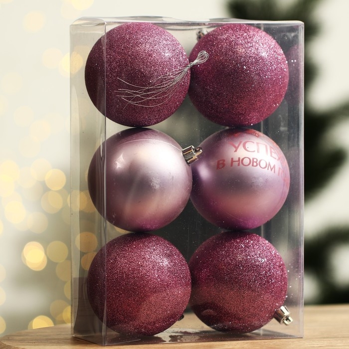 Шары ёлочные новогодние «Время счастья», на Новый год, пластик, d=8, 6 шт., цвет розовая гамма
