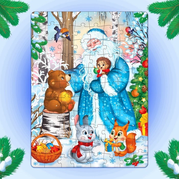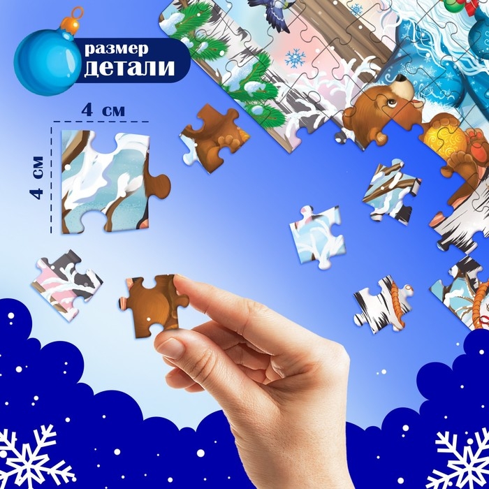 - Малыш соберёт все 88 деталей в одно целое и получит красочный пазл с новогодним сюжетом.