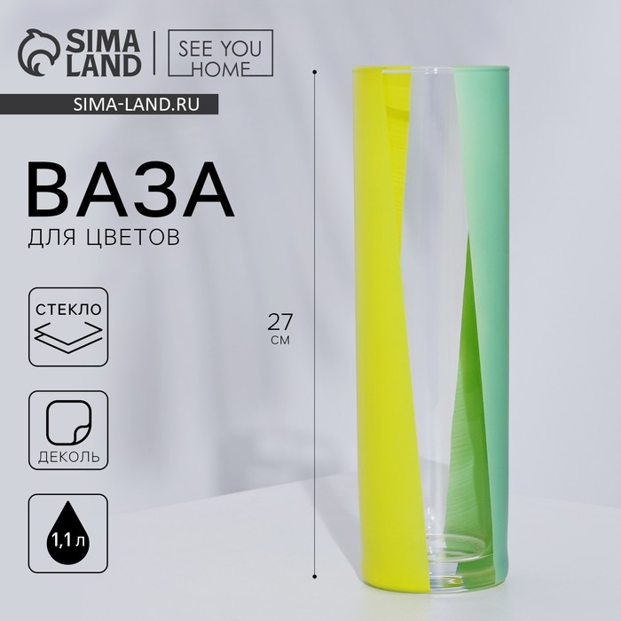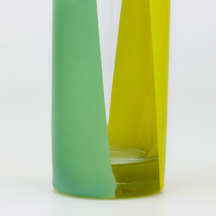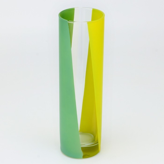 Ваза украшена диагональными полосами в двух цветах: зеленом и желтом.