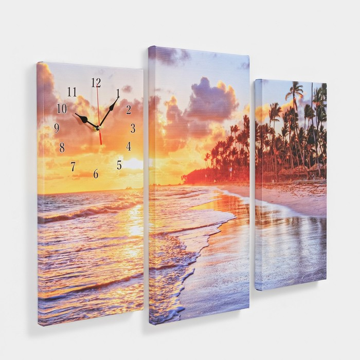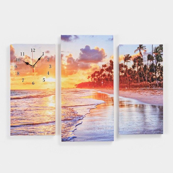 Часы-картина настенные, модульные "Пальмы на закате", 60х80 см