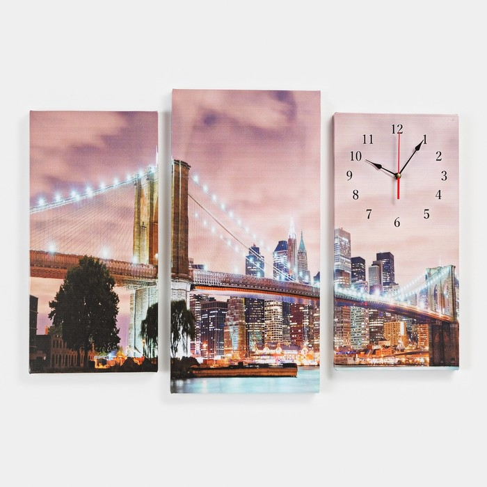 Часы-картина настенные, модульные "Светящийся мост", бесшумные, 60 х 80 см, триптих