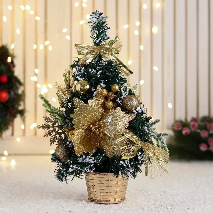 Ёлка декор "Праздничная" цветок шары, 15х29 см, золото