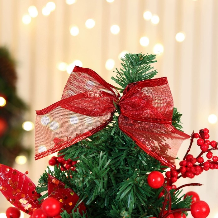Ёлка декор "Праздничная" бантик листья ягоды, 14х26 см, красный