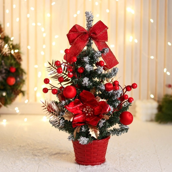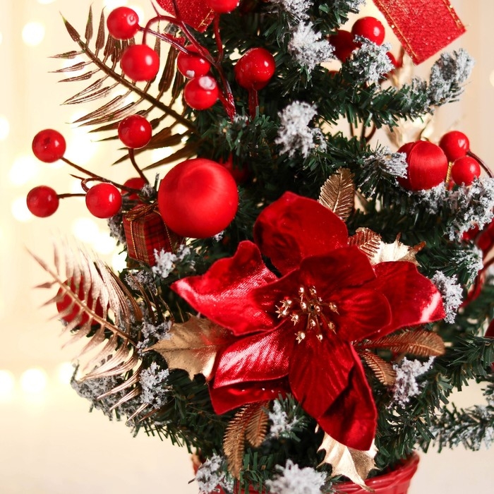 Ёлка декор "Праздничная" цветок бантик шары ягоды, 16х35 см, красный