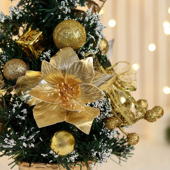Ёлка декор "Праздничная" цветок бантик веточки, 16х36 см, золото