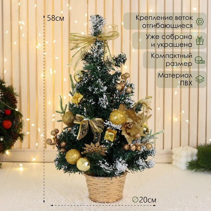 Ёлка декор "Праздничная" цветок шары, 20х58 см, золото