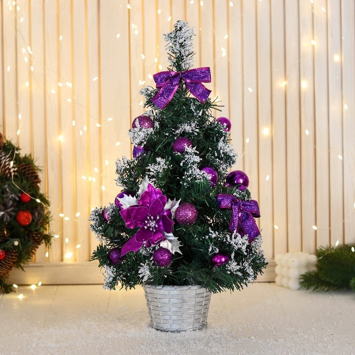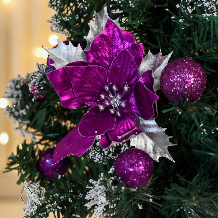 Ёлка декор "Праздничная" бантик цветок шары, 20х58 см, фиолетовый