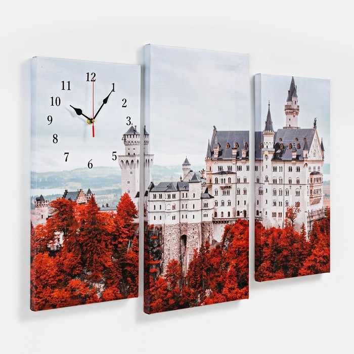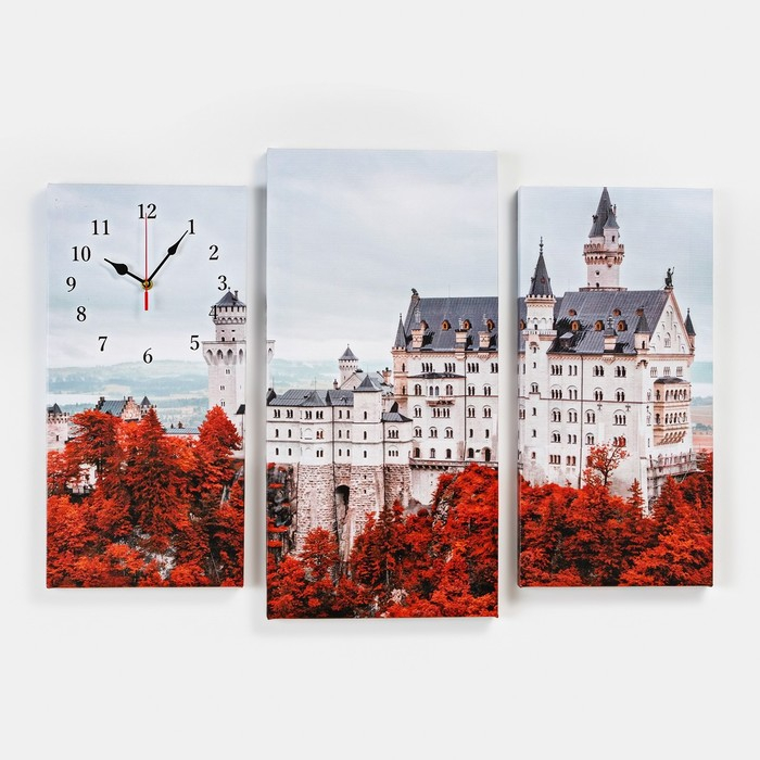 Часы-картина настенные, модульные "Белый замок", бесшумные, 60 х 80 см, триптих