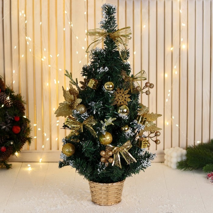 Ёлка декор "Праздничная" цветок шары, 28х58 см, золото