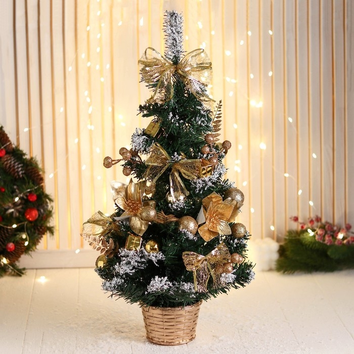 Ёлка декор "Праздничная" бантик цветок шары, 28х58 см, золото