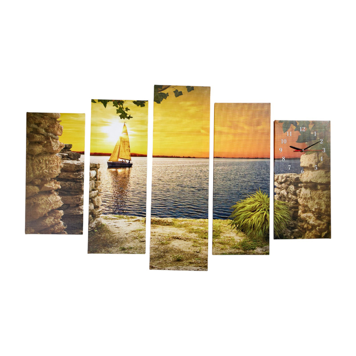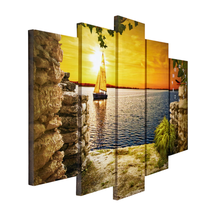 Часы-картина настенные, модульные "Парусник на закате", бесшумные, 80 х 140 см