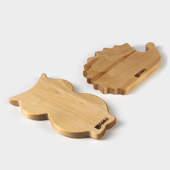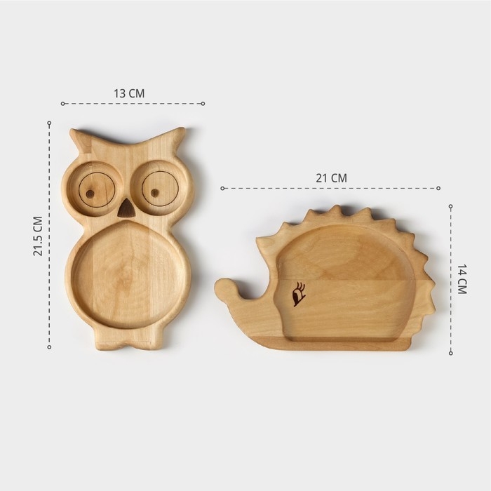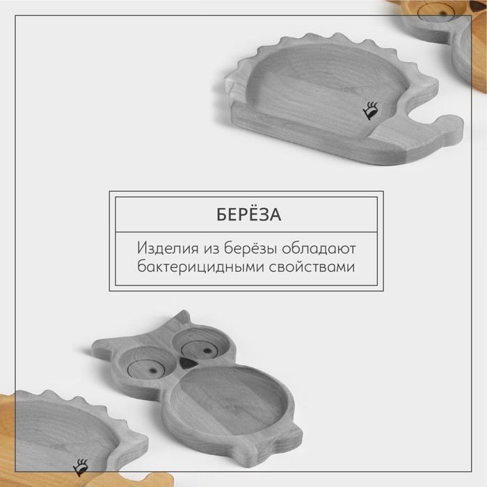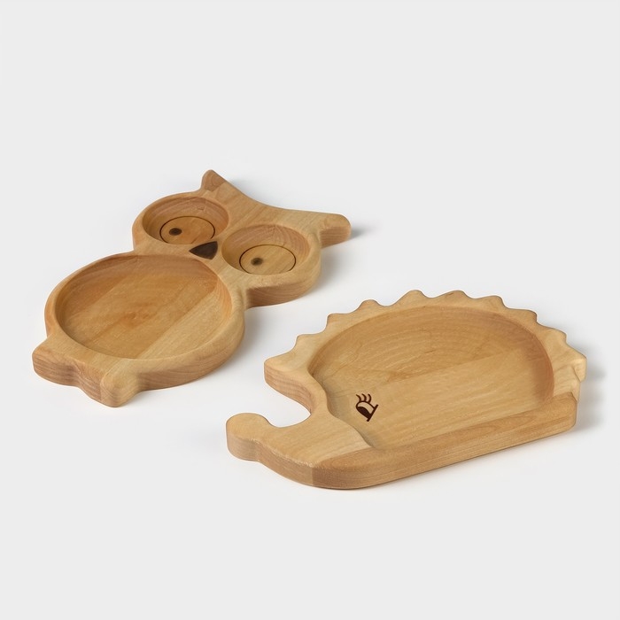 Набор деревянной посуды Adelica «Советское детство», менажница, ежик 21×14×1,8 см, сова 21,5×13×1,8 см, в подарочной коробке