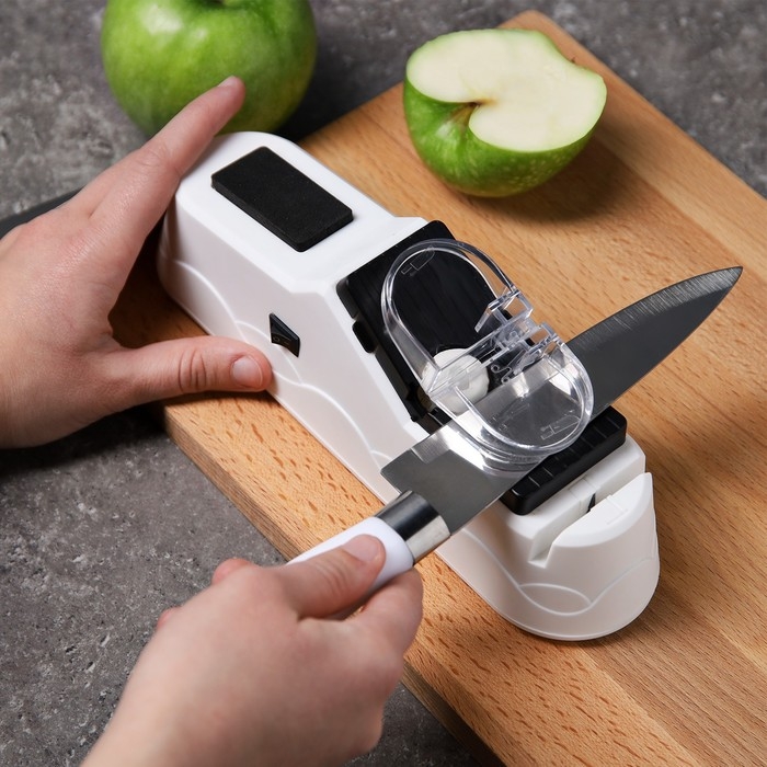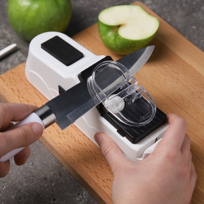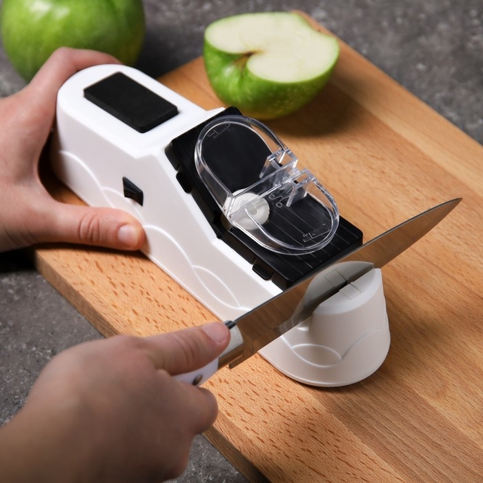 Устройство оборудовано несколькими пазами для заточки различных предметов: кухонных ножей с гладким лезвием, ножниц и отвёрток. Для удобства каждый из пазов имеет обозначение в виде иллюстрации того предмета, который вы хотите наточить.