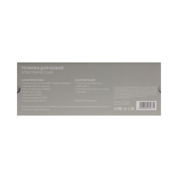 Ножеточка Luazon LTE-01, электрическая, для ножей/ножниц/отвёрток, 220 В, серая