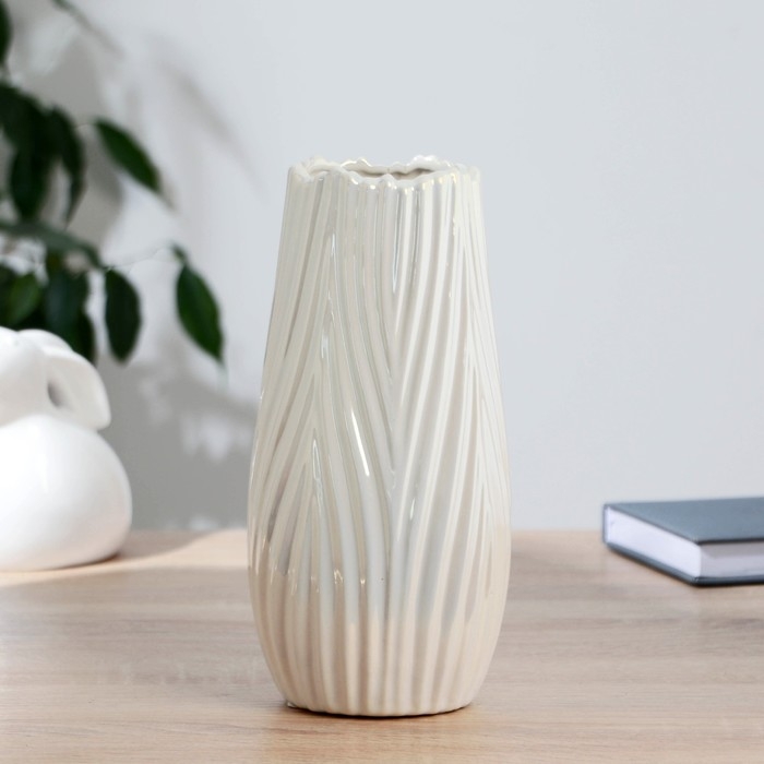 Ваза керамика настольная "Кирст перламутр" d-7,5 см, 24х12 см, белый
