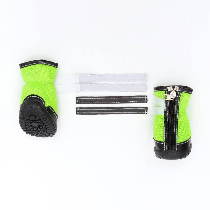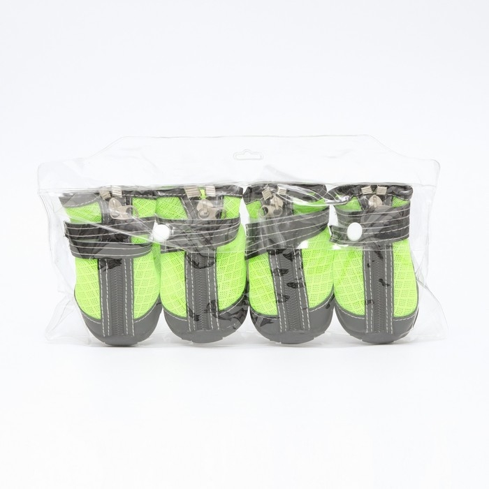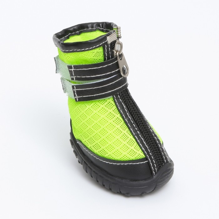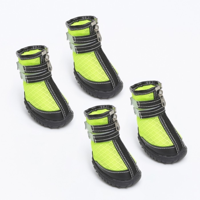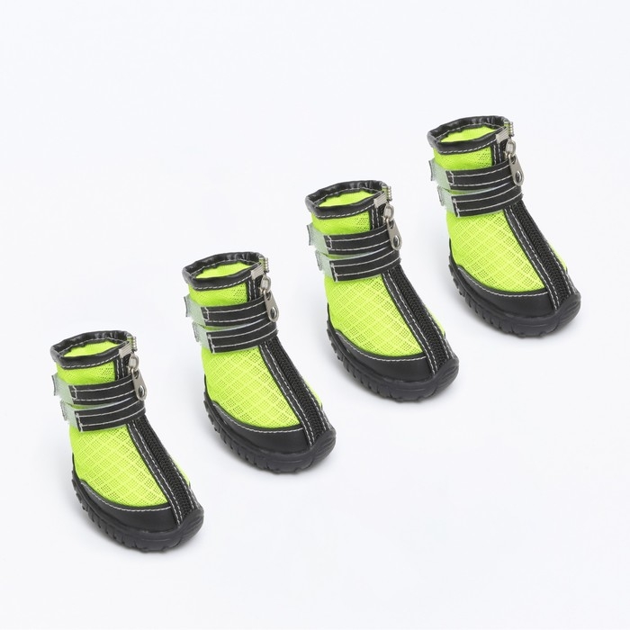 Ботинки высокие для больших собак, набор 4 шт, размер M (подошва 9х6,4 см), чёрно-салатовые