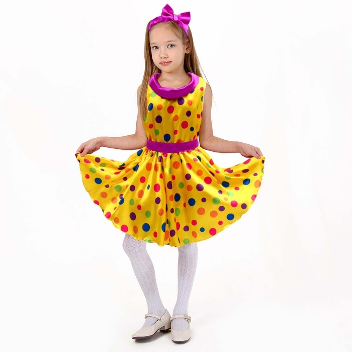Карнавальный костюм «Стиляги 8», платье жёлтое в крупный горох, повязка, р. 36, рост 140 см