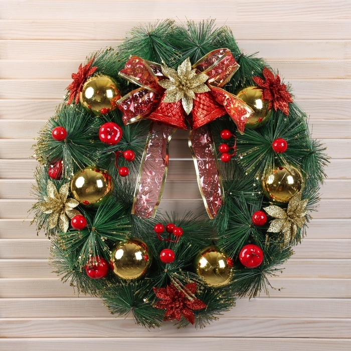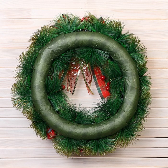 Венок новогодний d- 37 см "Уютная сказка" бант в клетку с колокольчиками