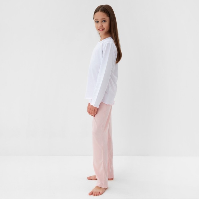Пижама для девочки (кофта и брюки) MINAKU, цвет белый/розовый, рост 146 см
