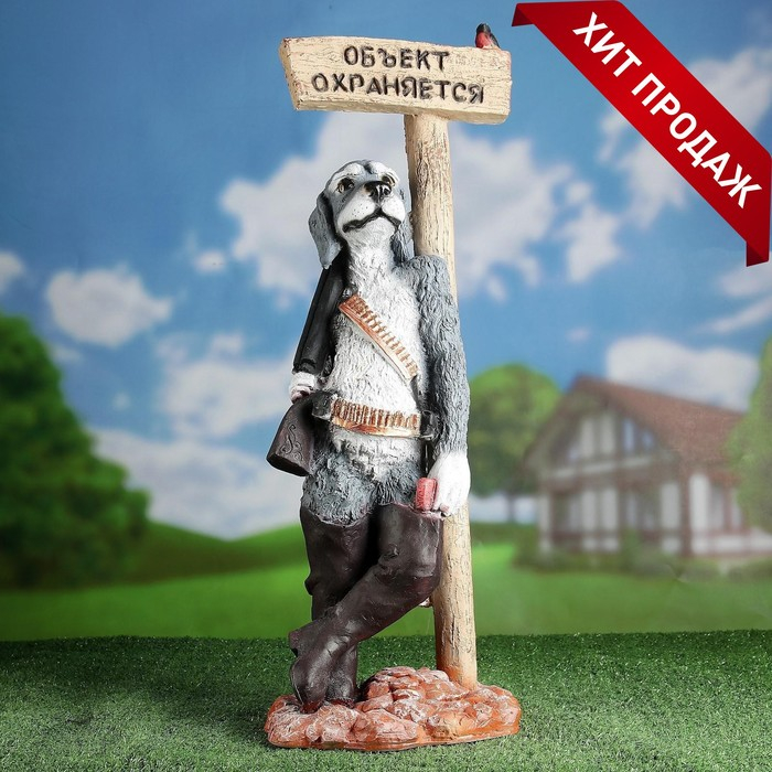 Садовая фигура "Собака - Объект охраняется" 61х24см
