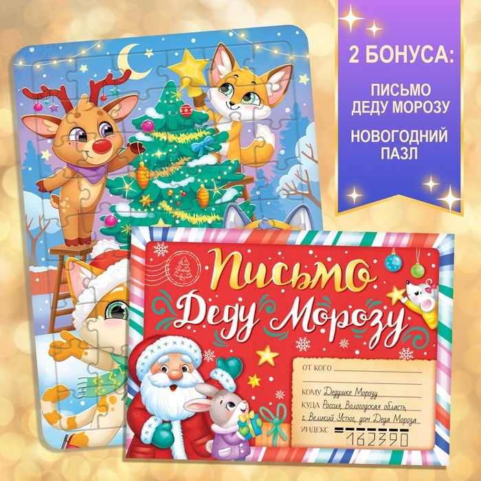 - Большой волшебный пазл из 54 элементов на подложке из плотного картона, который поможет скрасить ожидание Нового года.