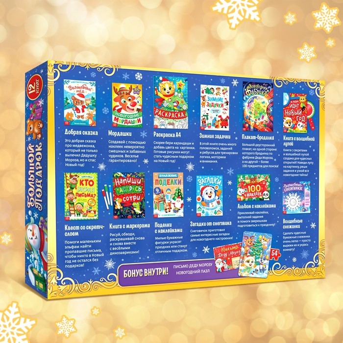 Новогодний набор «Большой подарок», 12 книг + 2 подарка: письмо и пазл 54 элемента
