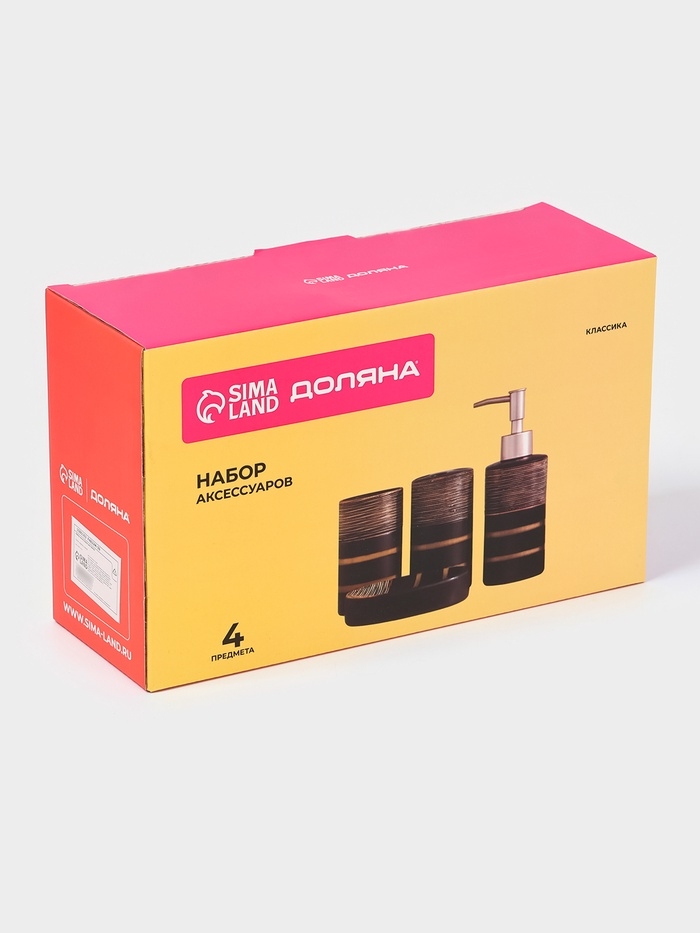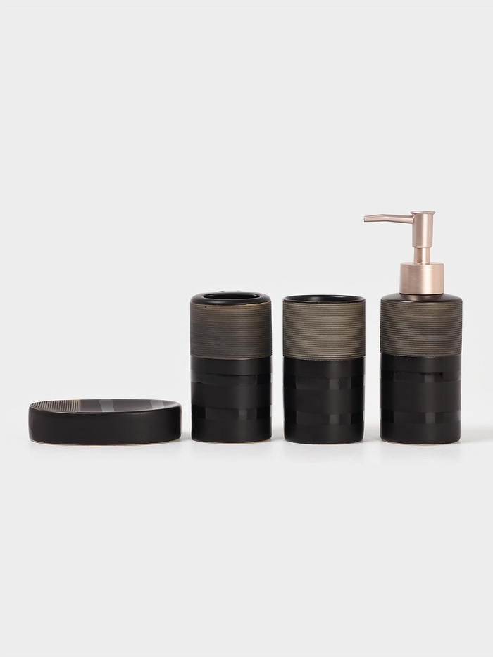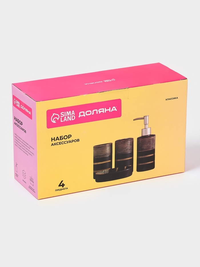 Набор аксессуаров для ванной комнаты Доляна «Классика», 4 предмета (дозатор 300 мл, мыльница, 2 стакана), цвет чёрный