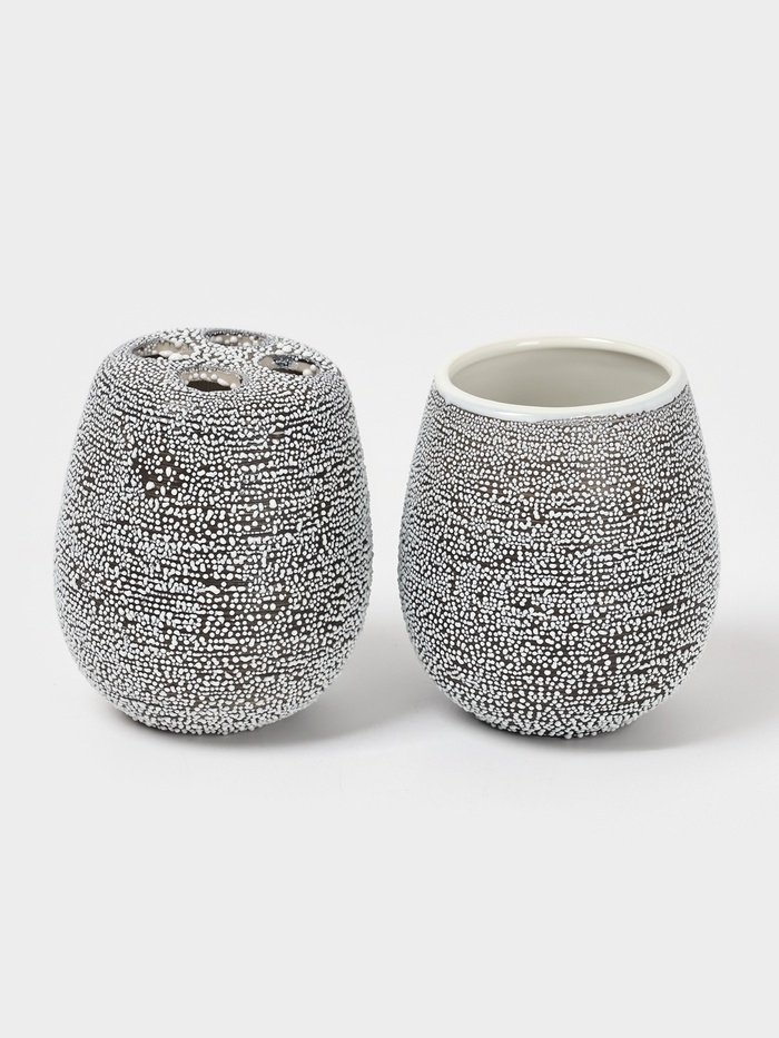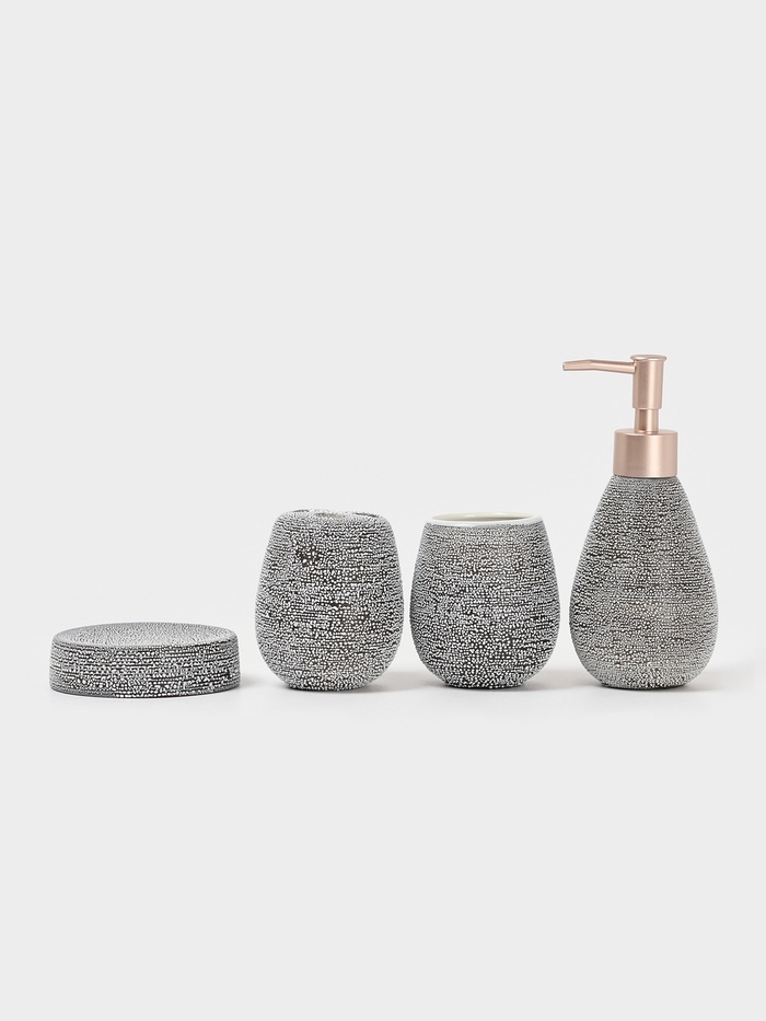 Набор аксессуаров для ванной комнаты Доляна «Камень», 4 предмета (дозатор 300 мл, мыльница, 2 стакана), цвет серый