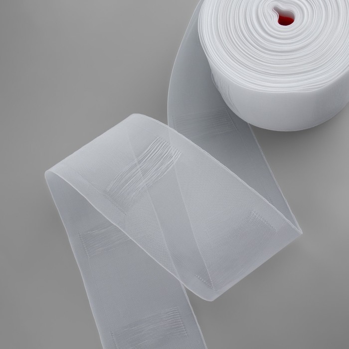 Шторная лента классическая, органза, 2,5 см, 100 ± 1 м, цвет прозрачный/белый