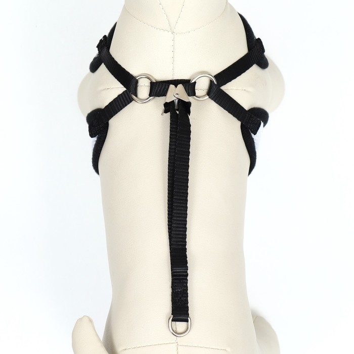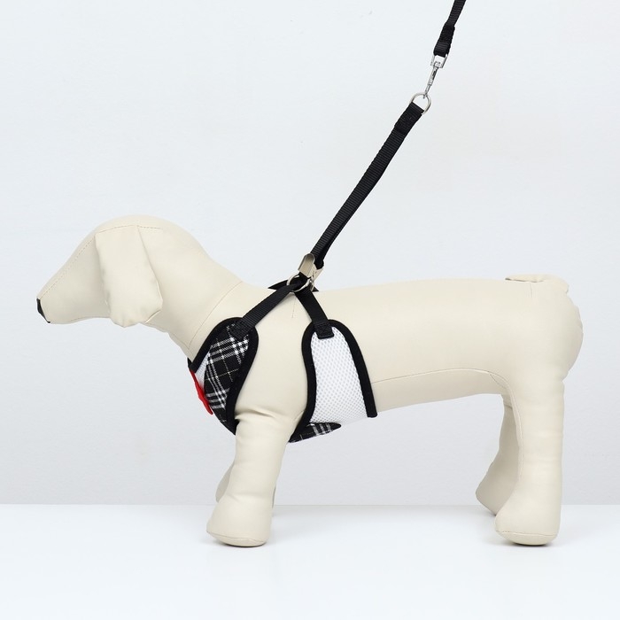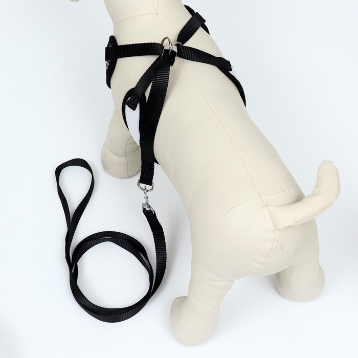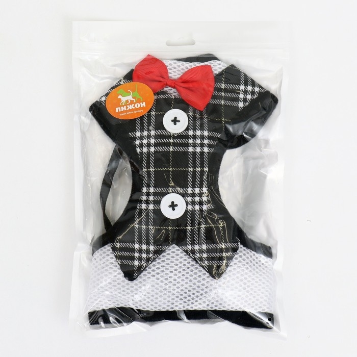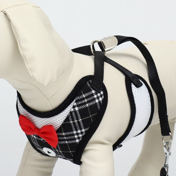 Комплект с мягкой шлейкойи бантиком "Клетка", L, поводок 120 x 1,5 см, ОГ 35-50 см, чёрный 96837
